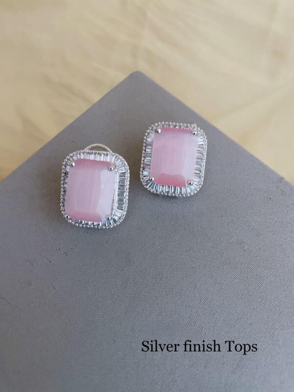 Elegantly crafted for those who appreciate subtle glamour, these Radiant Rose Rectangular Stud Earrings feature a soft pink stone framed with shimmering silver-finish detailing. The refined rectangular design, paired with a delicate halo of sparkling accents, makes these earrings perfect for both formal occasions and everyday sophistication. Lightweight and graceful, they are designed to enhance your look with a touch of modern charm.
